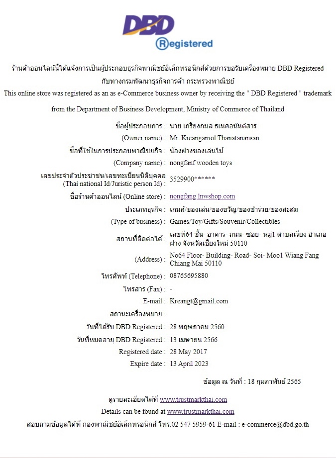 จดทะเบียนการค้า ตั้งแต่วันที่ 28 พฤษภาคม 2560